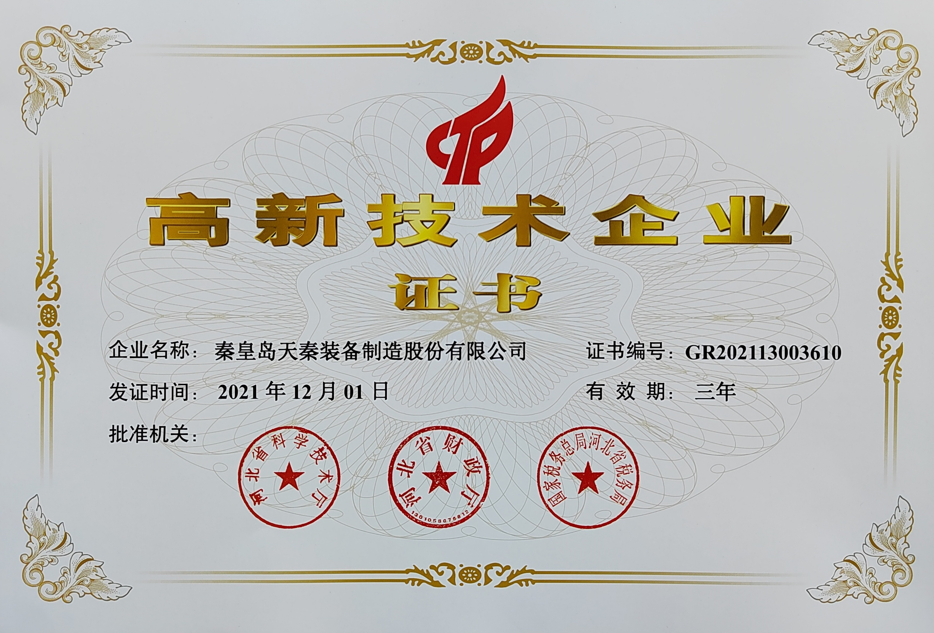• 秦皇島天秦裝備制造股份有限公司創(chuàng)立于1996年,總部位于河北省秦皇島市經(jīng)濟技術(shù)開發(fā)區(qū),秦皇島廠區(qū)占地4萬平方米,擁有3萬平方米的標準廠房、辦公樓和工程技術(shù)研發(fā)中心;分部天津廠區(qū)位于天津市靜海經(jīng)濟開發(fā)區(qū),占地2萬平方米,擁有1.6萬平方米標準廠房。 公司通過了GB/T 19001質(zhì)量管理體系及GB/T 24001環(huán)境管理體系認證,是國家高新技術(shù)企業(yè)、河北省軍民融合產(chǎn)學研用創(chuàng)建基地,建有省級院士工作站。